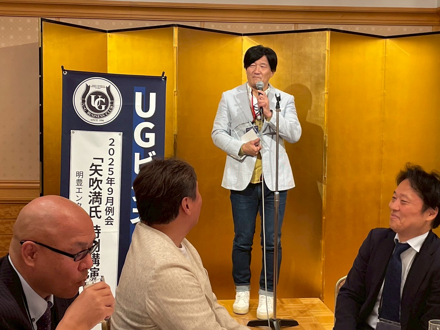 9月12日(金)帝国ホテル東京にて「矢吹満氏 特別講演会」を開催し、会員32名、ビジター38名、矢吹グループ27名、その他5名、計102名が参加しました。